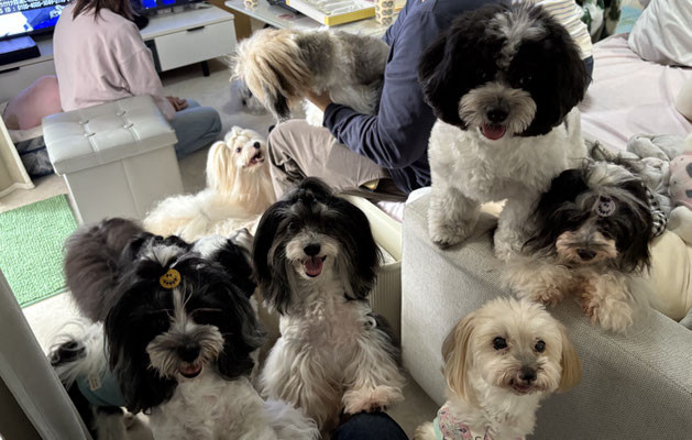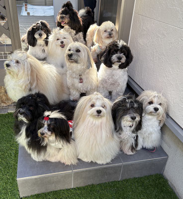 すっかり成犬になったハバニーズのアビー、チャモ、ルーチェは、東京から久しぶりのお里帰り。お母さん犬、お父さん犬、兄弟犬とも再会できて、とても嬉しそうでした。